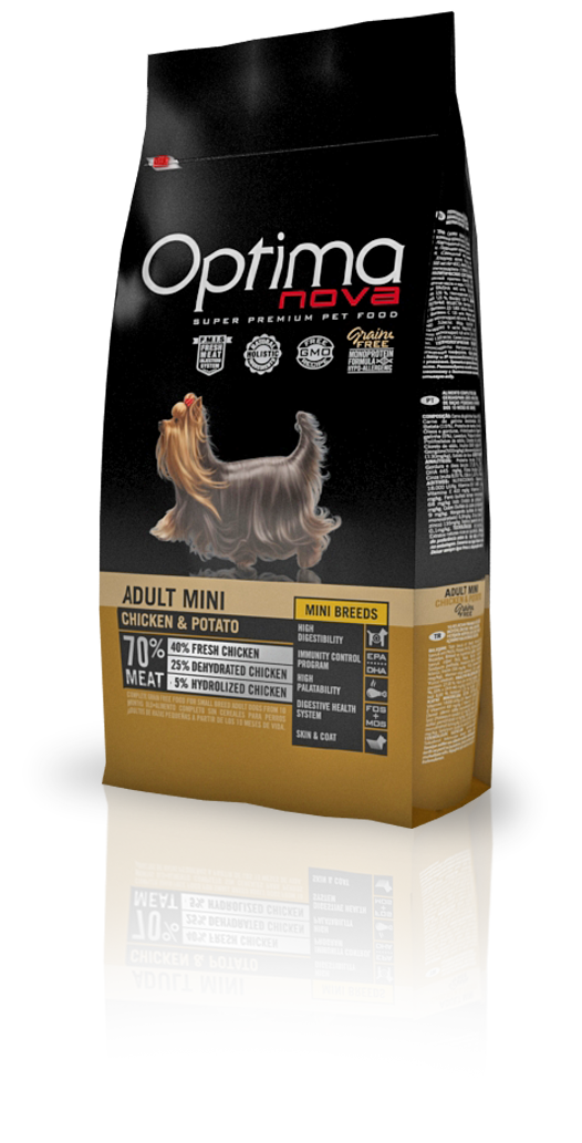 Krmiva Optimanova ze 100% přírodních surovin neobsahují žádná uměla barviva, dochucovadla a antioxidanty. Ať už jde o krmivo pro kočku nebo pro psa, spolehněte se na perfektně vyvážený poměr živin.
